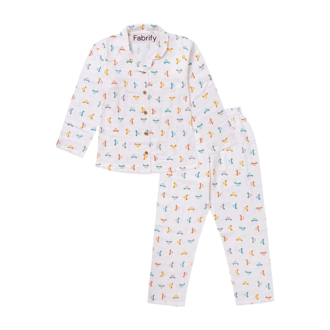 Baby and Kids Muslin Cotton Printed Pyjama Set, Nightwear, Sleepwear, Trendy Nightsuit for Boys and Girls