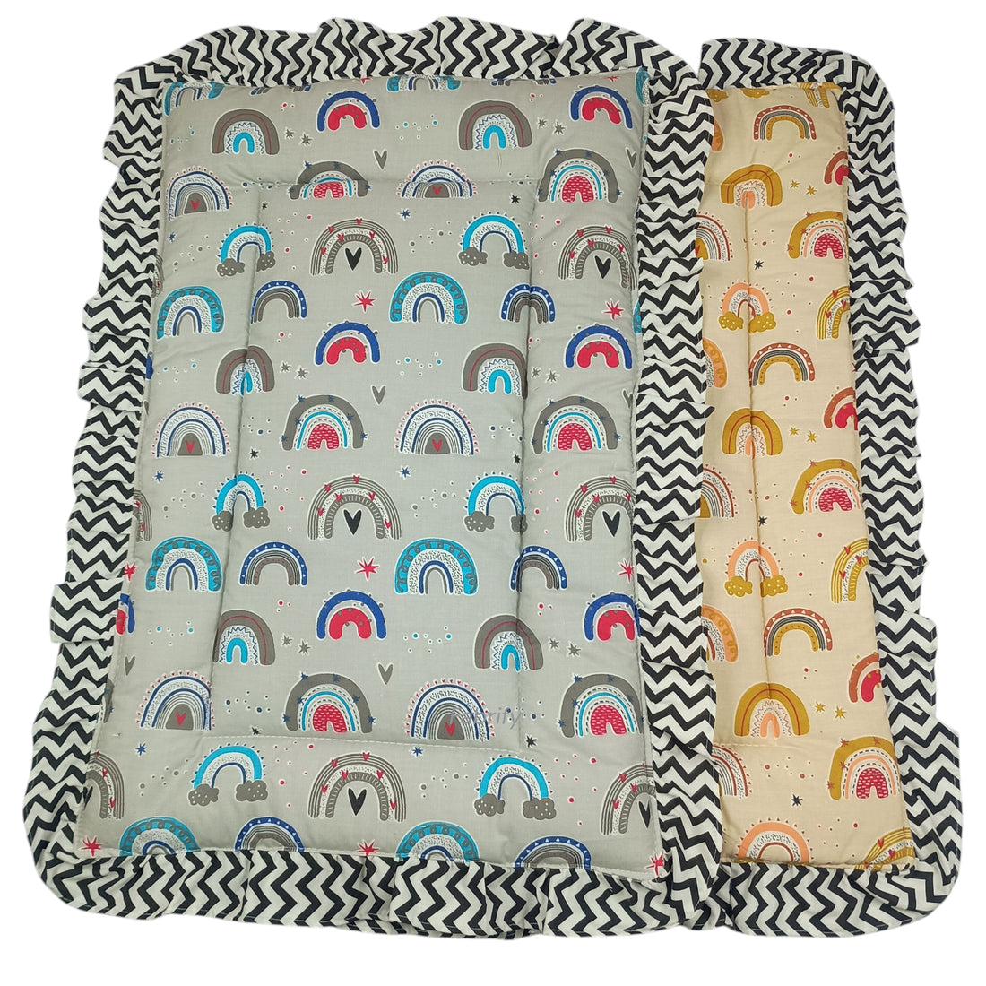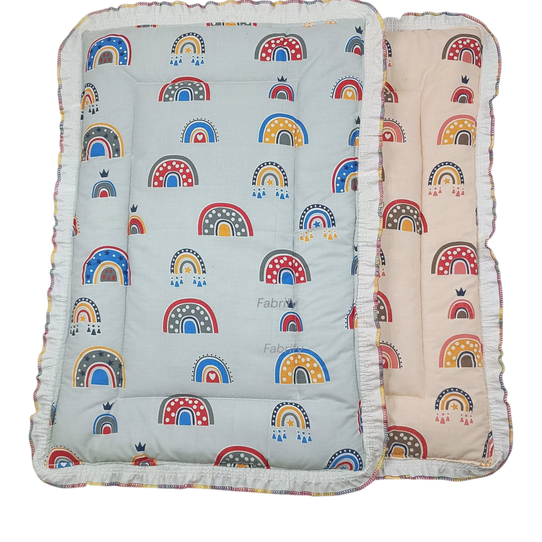 Fabrify 100% Soft Cotton New Born Baby Lacy Cotton Bed |Frill Mattress | Godadi Crib Sheet | Bedding Set | Godadi | Baby Mattress Rainbow (Pack of 2)