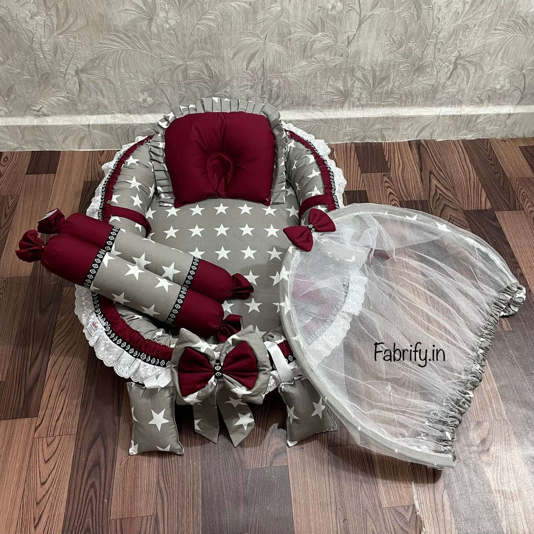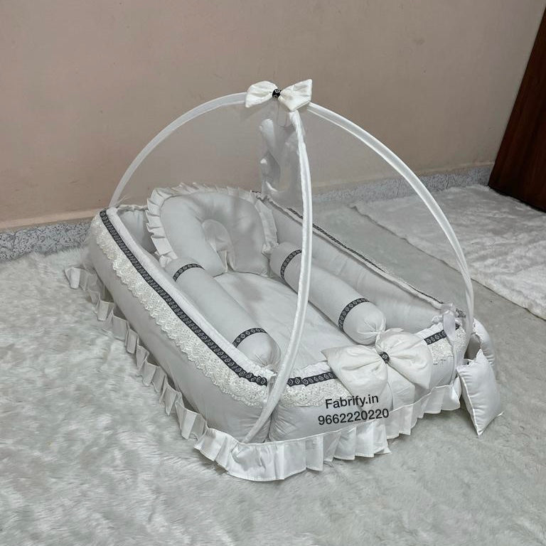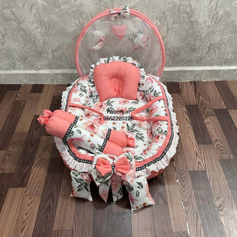 Fabrify Baby Nest Bed With Mosquito Net Head Pillow and 2 Side Pillow (0-18 M )