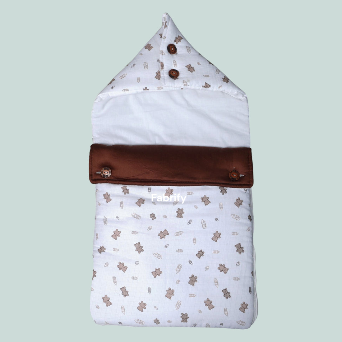 Fabrify 3 in 1 Baby Sleeping Bag & Carry Nest | Muslin Cotton Bedding Set for Infants & New Born Baby | Portable/Travel & Skin Friendly | 0-6 Months