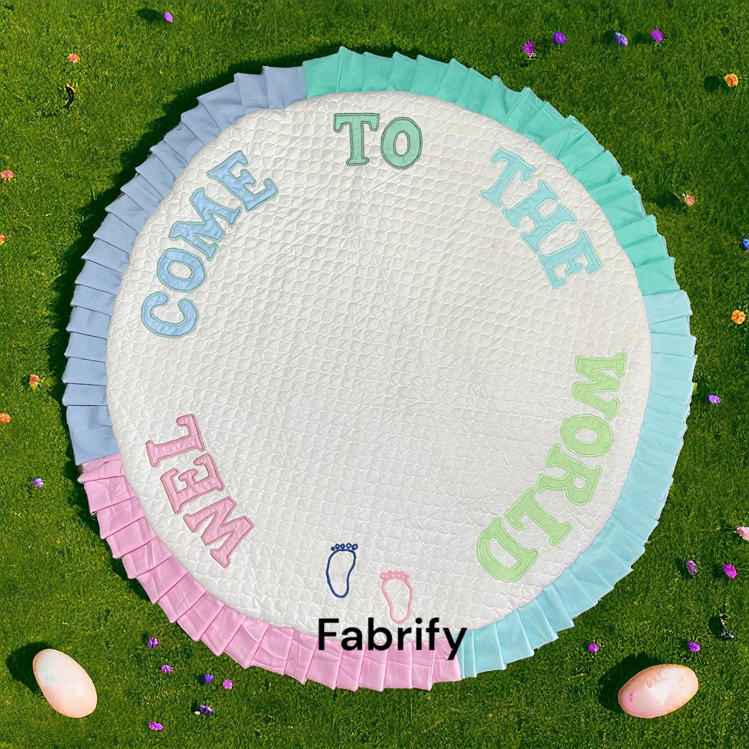Baby Bed Mattress with Applique Patchwork Quilt, Handcrafted Cotton with Godadi Chhathi Embroidery 90 X 90 cm