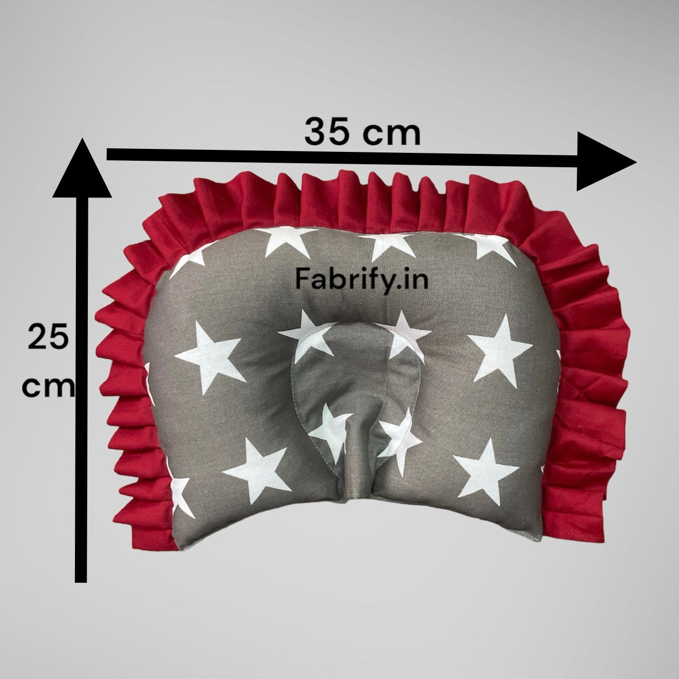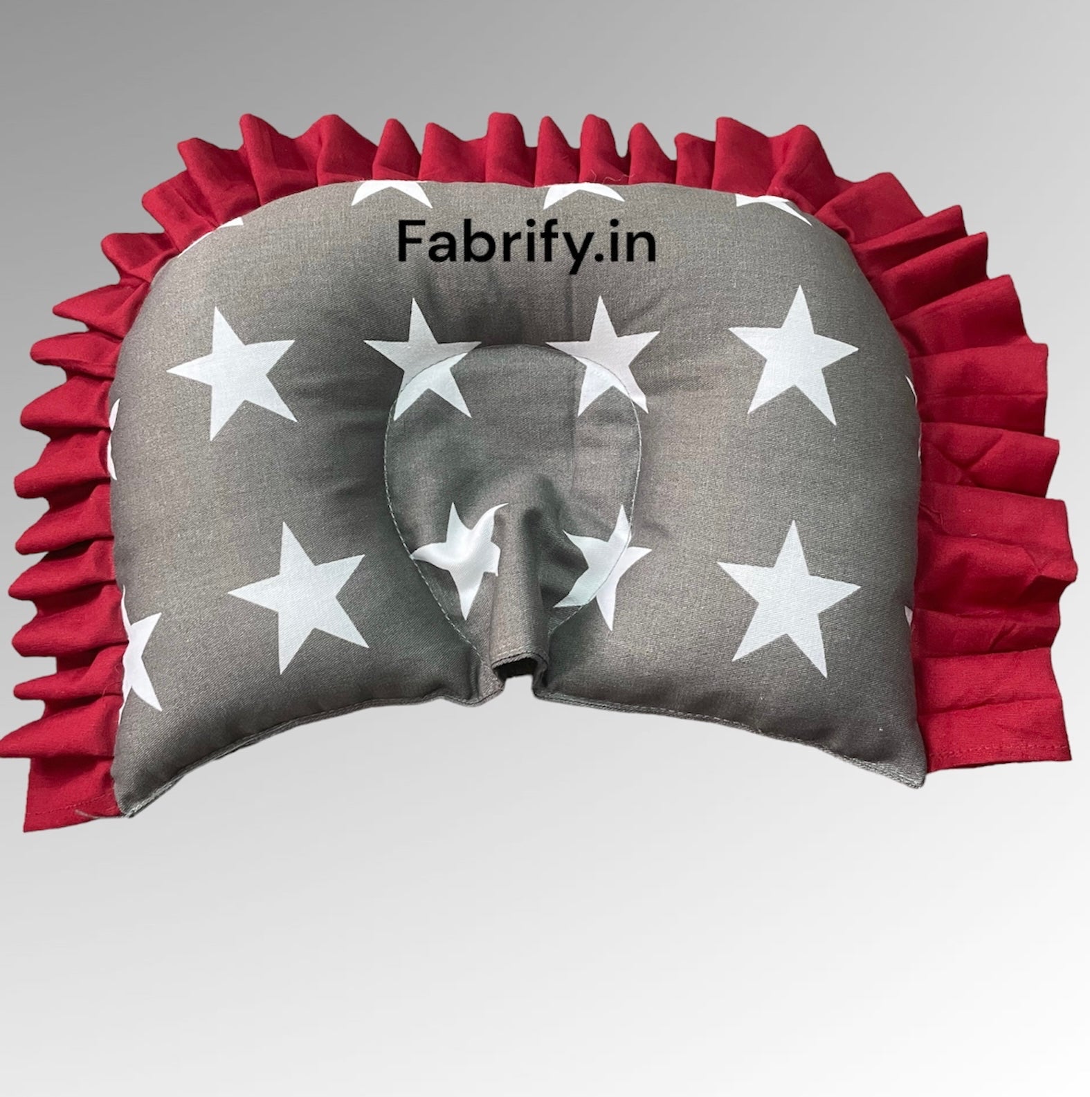 This pillow has a concave design in the middle that helps to shape your baby's head and evenly distributes the pressure to prevent flat head. This pillow is made of 100% premium quality fabric with hypoallergenic filling for maximum comfort.