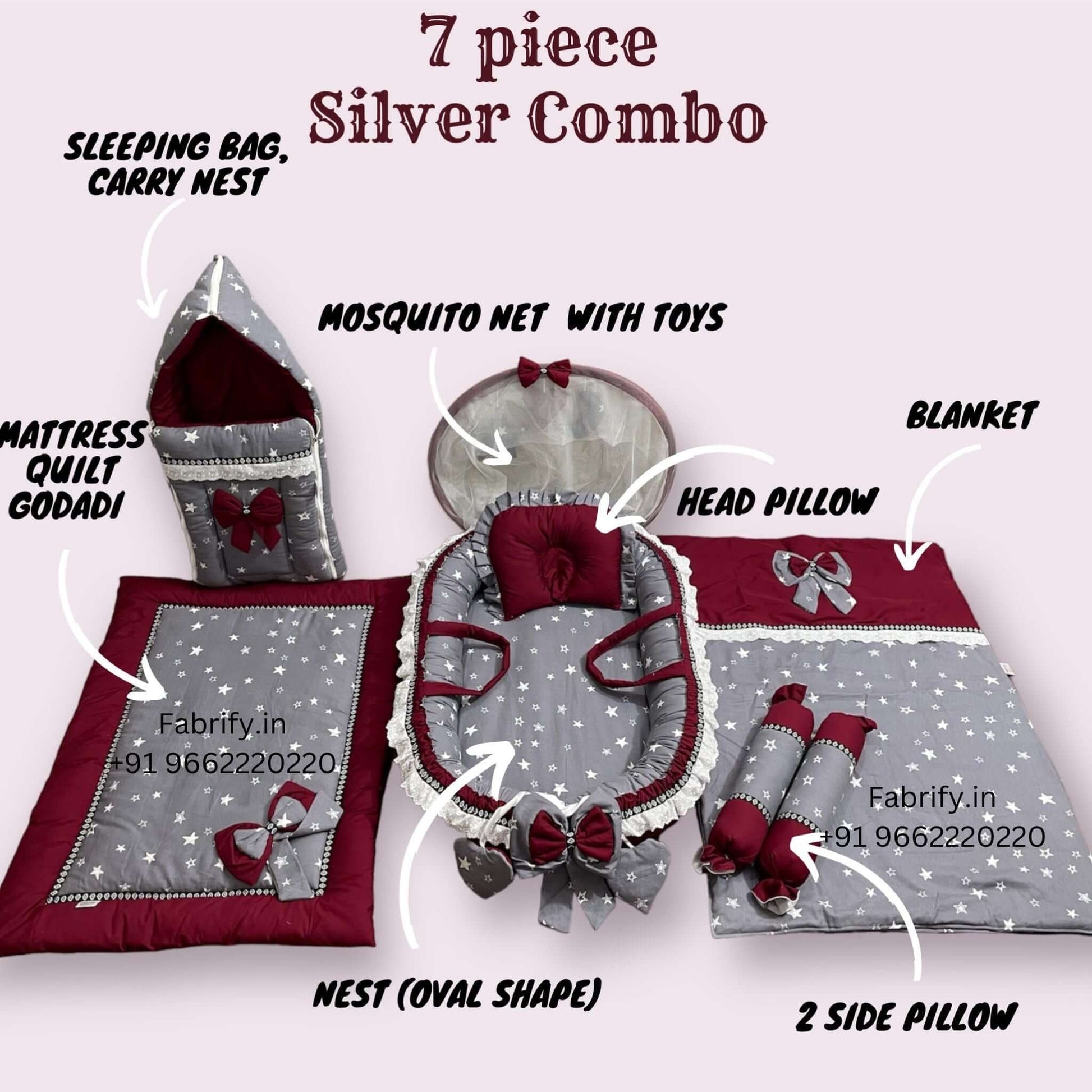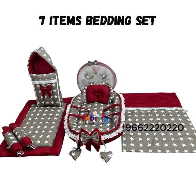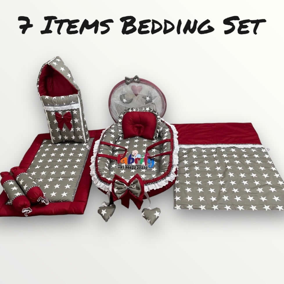 Fabrify 100% Cotton 7 Items Cotton Baby Bedding Set 0-2 Year