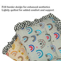 Fabrify Introduce your little one to comfort with Fabrify's Baby Newborn Soft Cotton Frill Mattress. This versatile baby bedding set includes two beautifully designed mattresses in blue and orange with charming rainbow patterns. Measuring 70 cm x 50 cm with a thickness of 0.99 cm, these lightweight mattresses are perfect for cribs and cradles. The foldable and portable design makes it convenient for travel or storage. With a maximum weight capacity of 15 kg, these mattresses are suitable for infants and can be easily maintained with simple wipe-clean care. The set comes with 2 pieces, providing excellent value for parents looking for reliable baby bedding solutions. The DIY assembly ensures you can quickly set up the mattress wherever needed. The cotton frills add a delightful decorative touch to your baby's sleeping space.