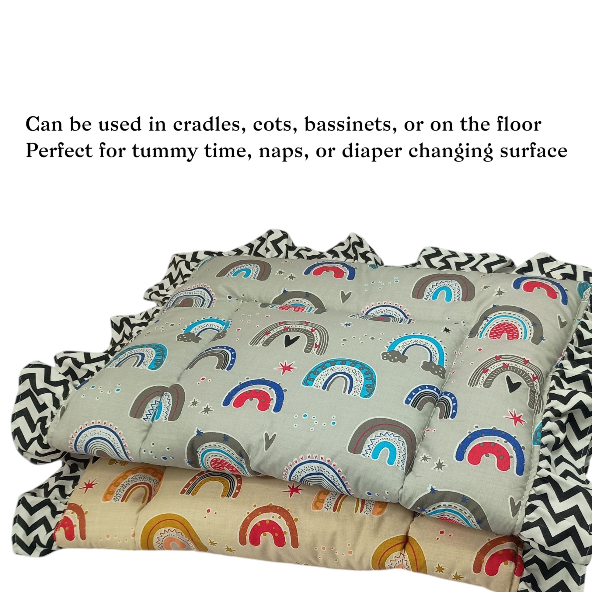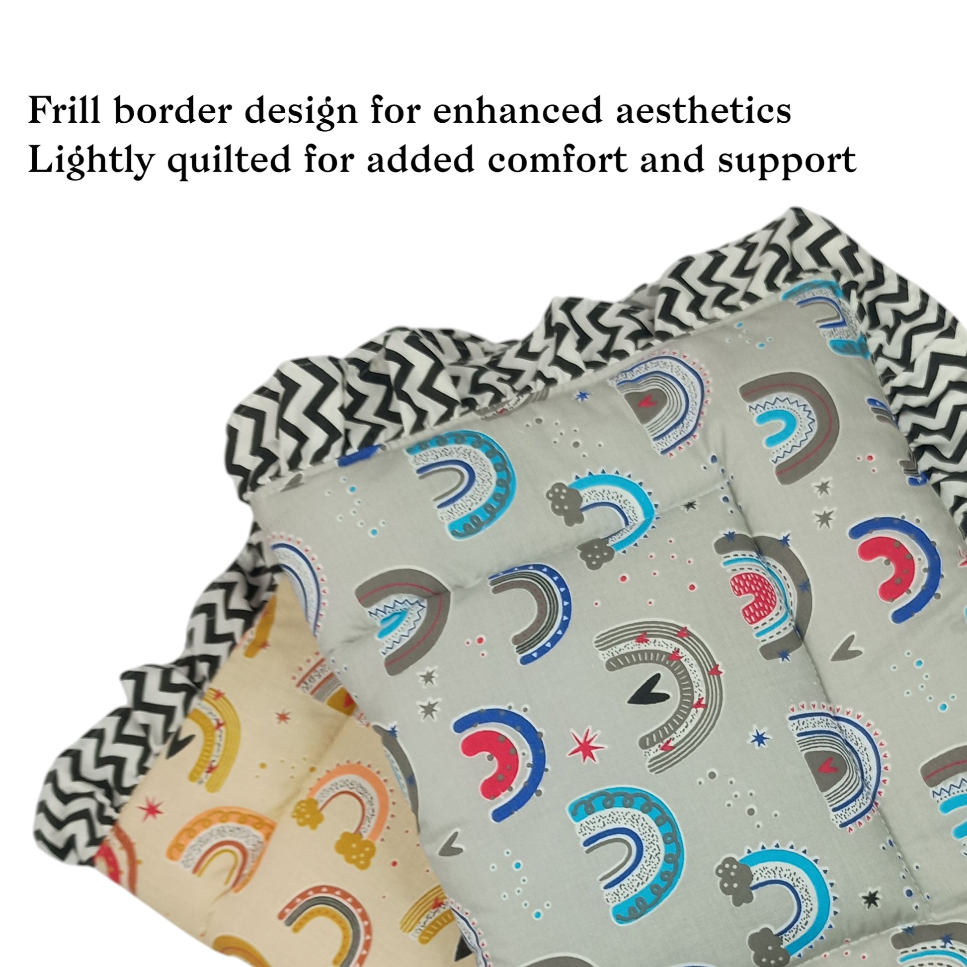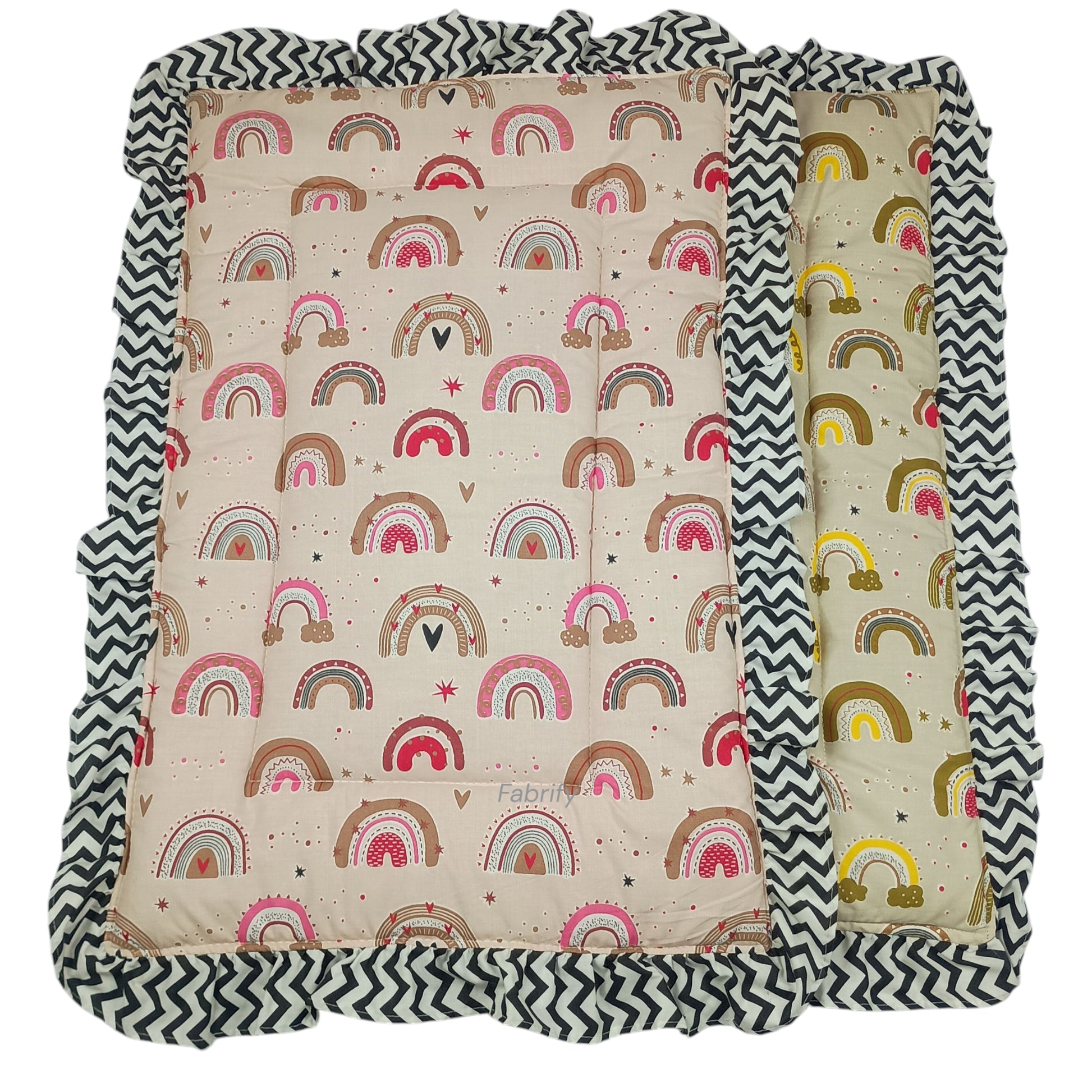Fabrify 100% Soft Cotton New Born Baby Lacy Cotton Bed |Frill Mattress | Godadi Crib Sheet | Bedding Set | Godadi | Baby Mattress Rainbow (Pack of 2)