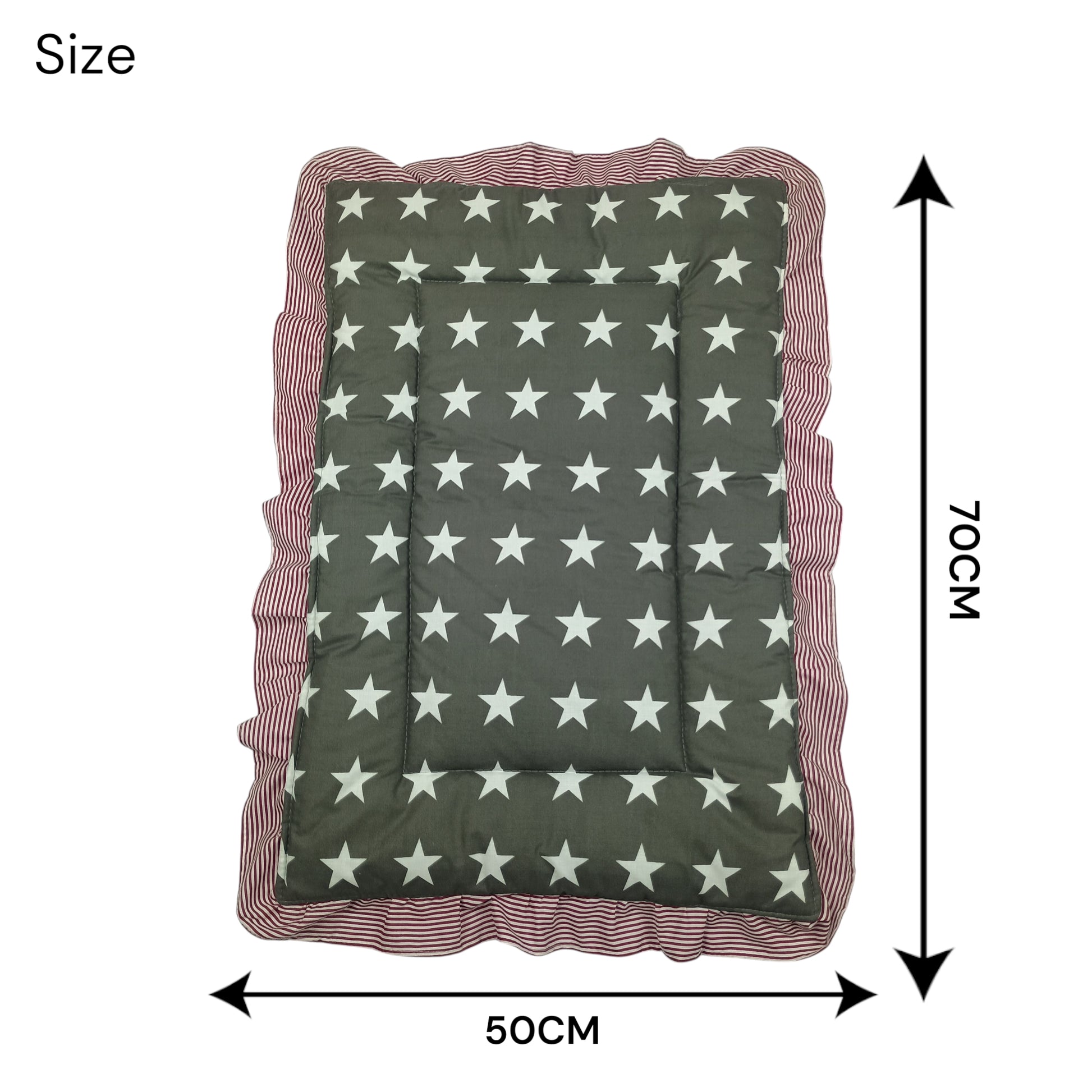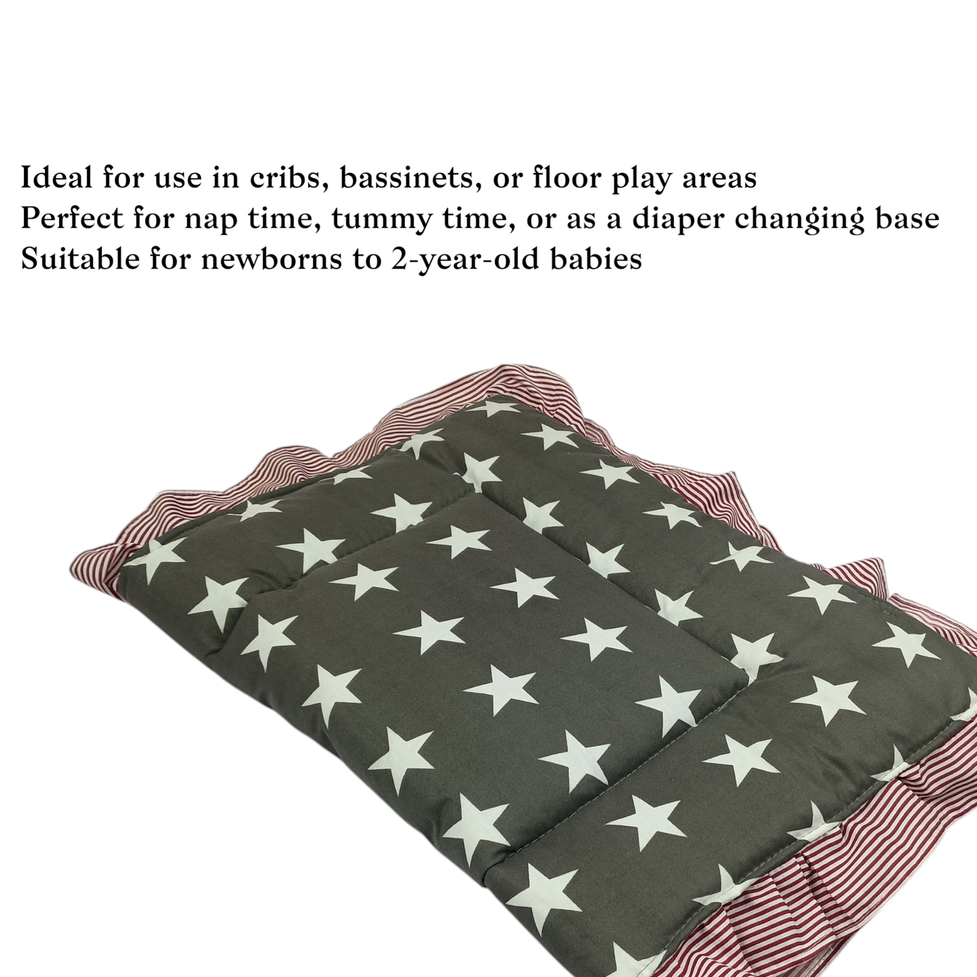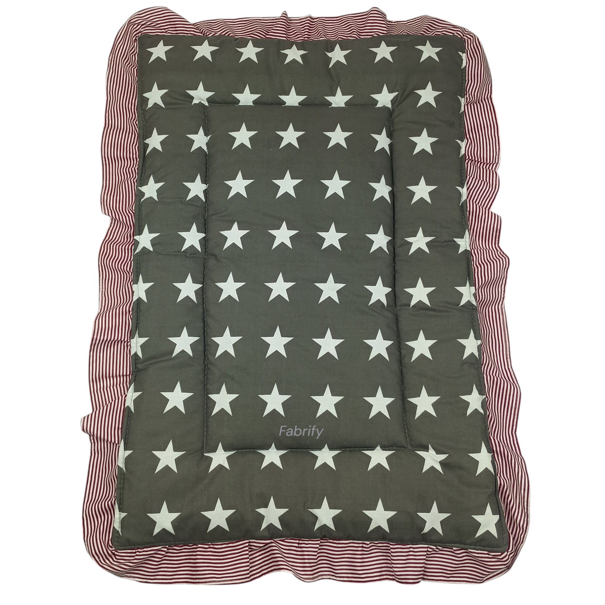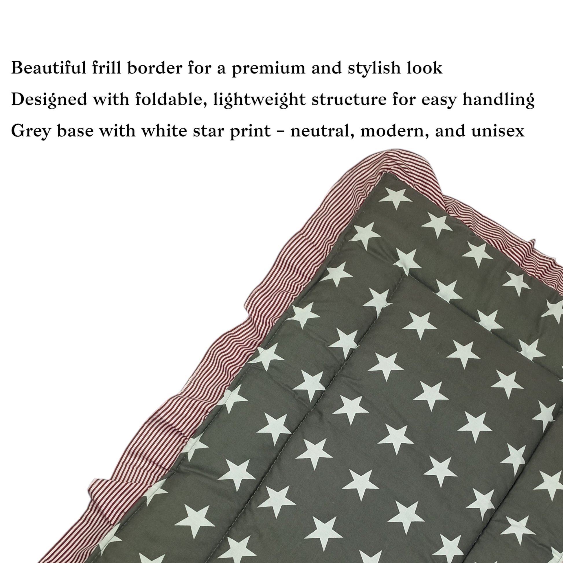 Fabrify 100% Soft Cotton New Born Baby Lacy Cotton Bed |Frill Mattress | Godari | Godali | Crib Sheet | Bedding Set | Godadi | Baby Mattress Grey White Star