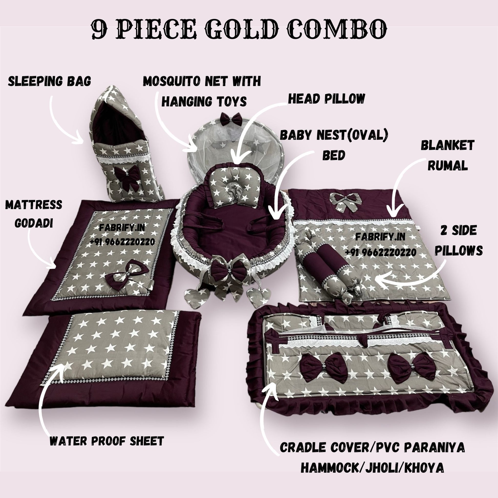 Fabrify 9 Items Cotton Baby Bedding Set 0-2 Year
