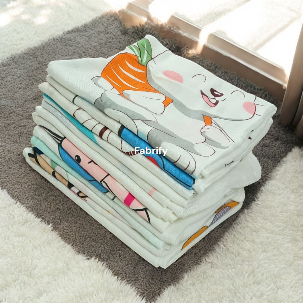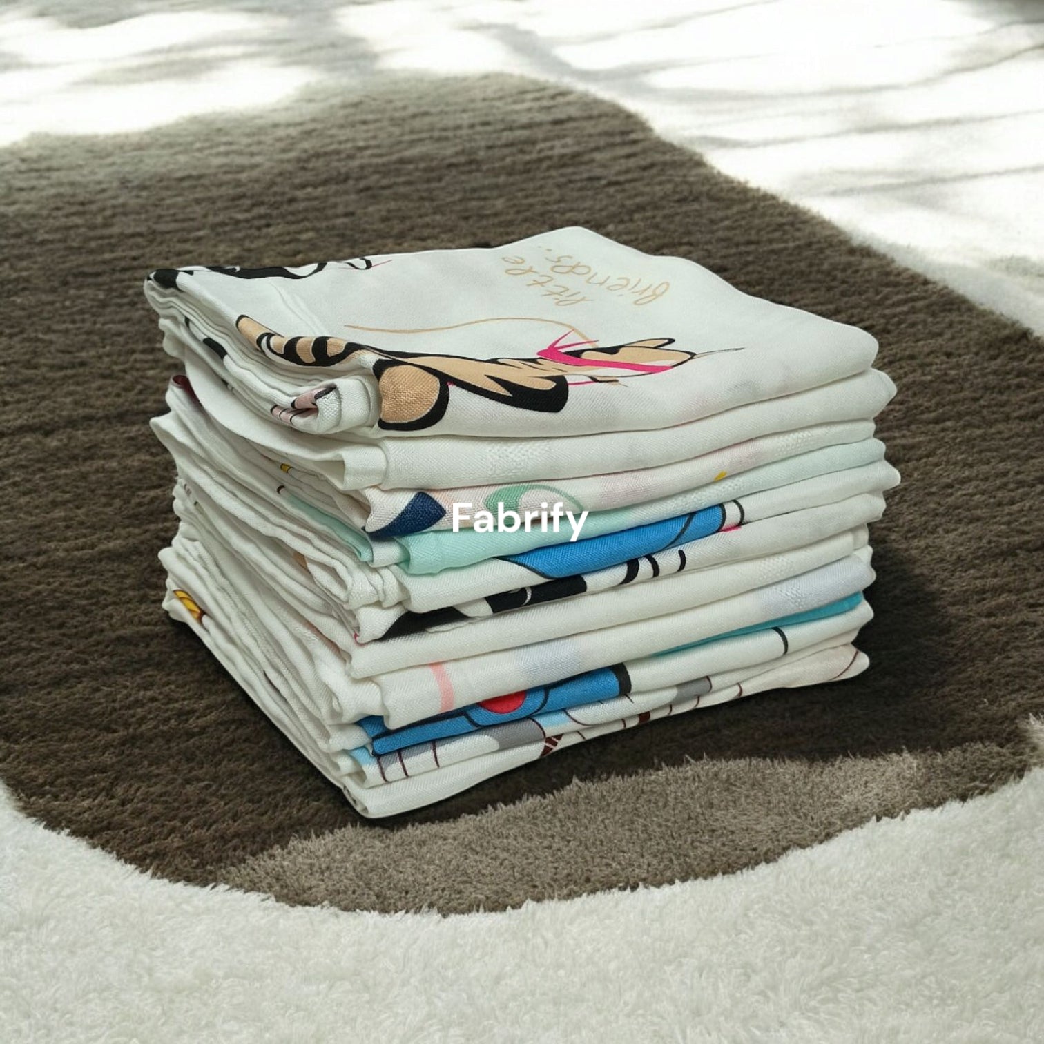 Fabrify Baby Bamboo Fiber 100% Cotton Blanket, Muslin Swaddle Blanket for Newborn/Infant and Toddler Multipurpose Bamboo Wrapper/Baby Bath Towel 2 Layer, 110cm x 110cm, Pack of 1 (Random Design)