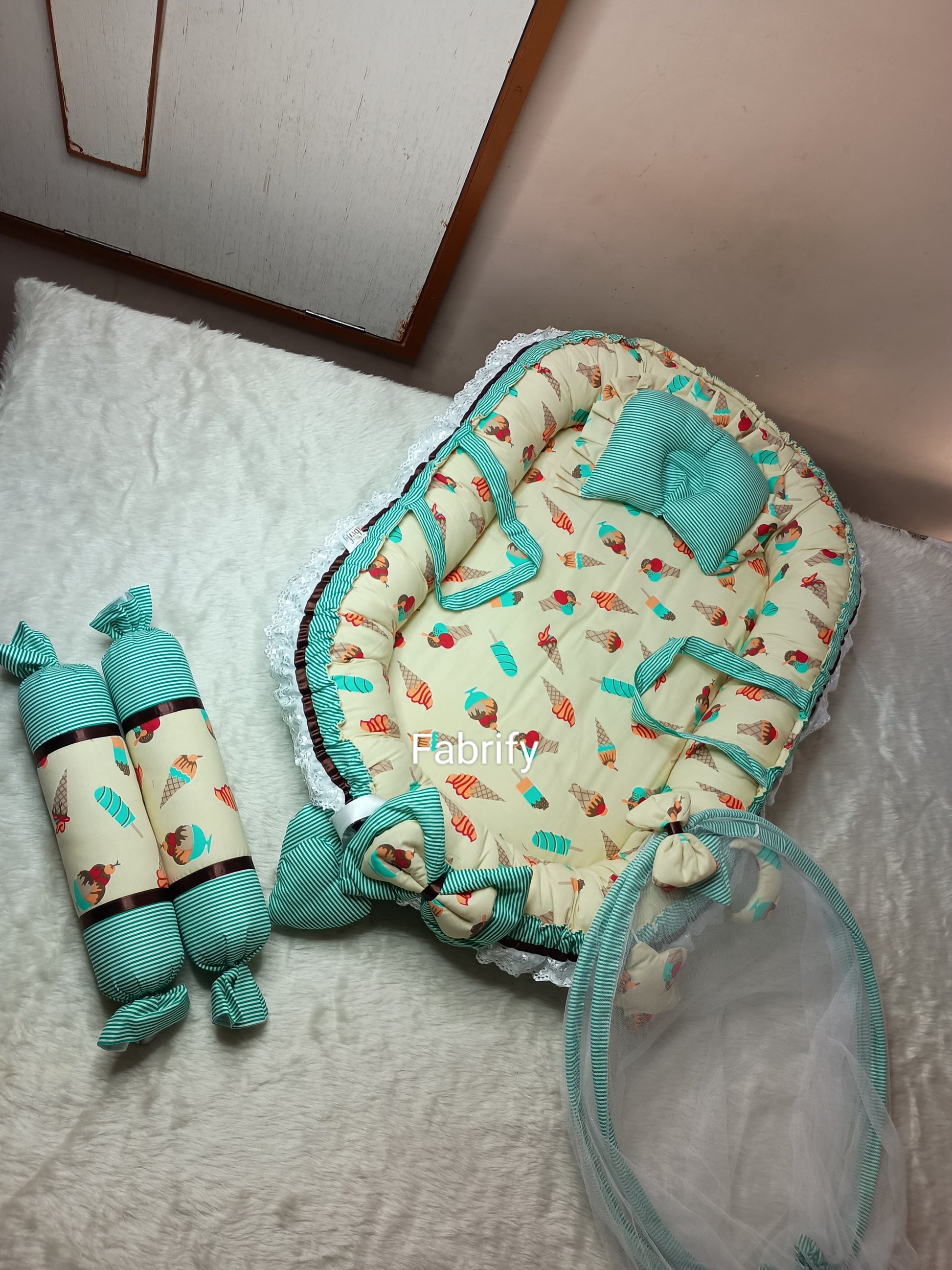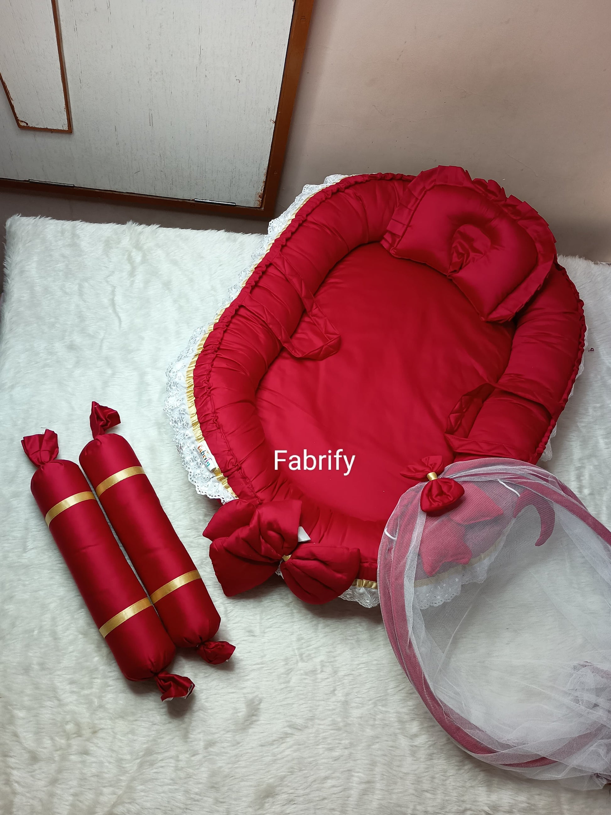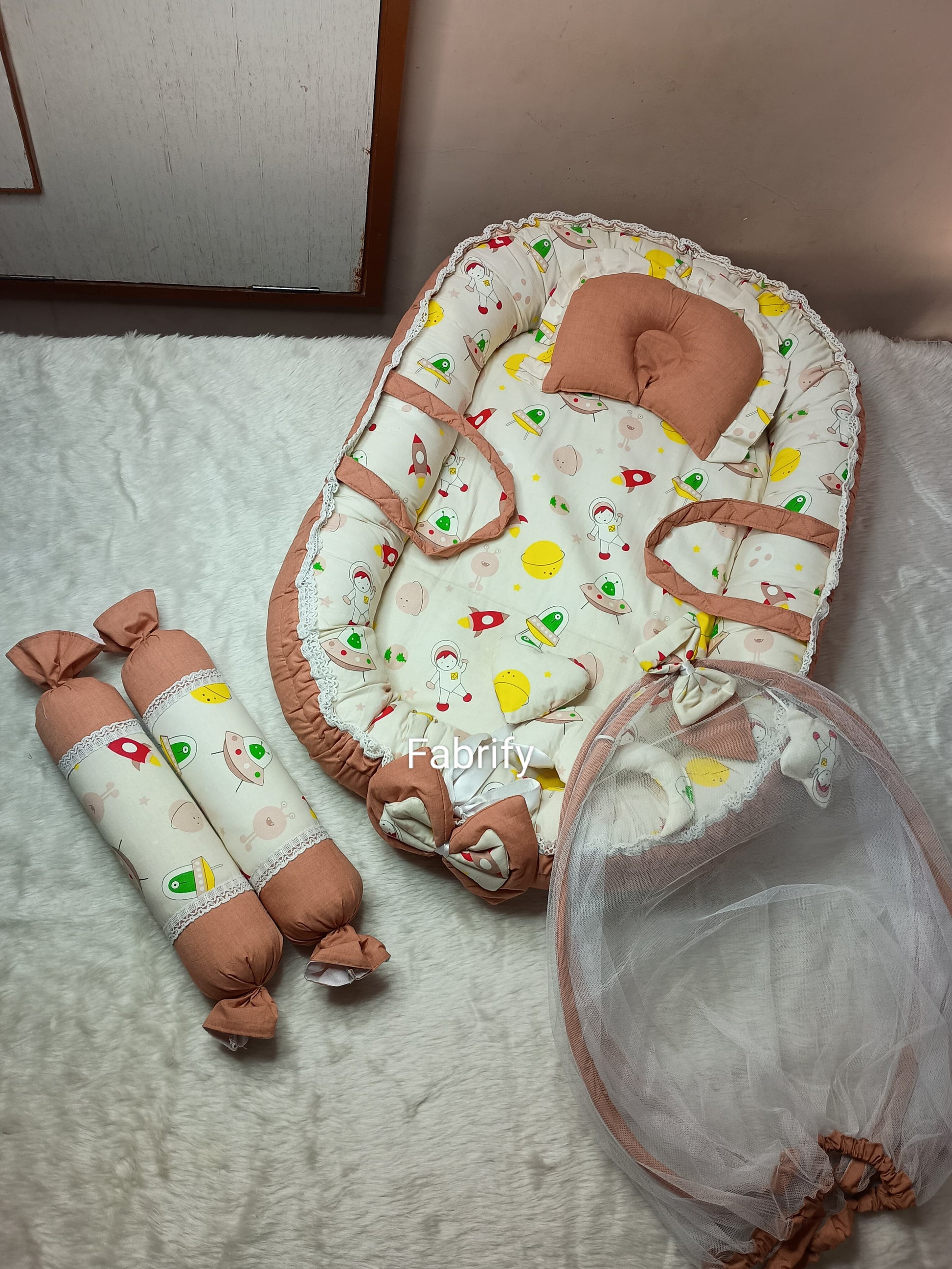 Fabrify Baby Nest Bed With Mosquito Net Head Pillow and 2 Side Pillow (0-18 M )