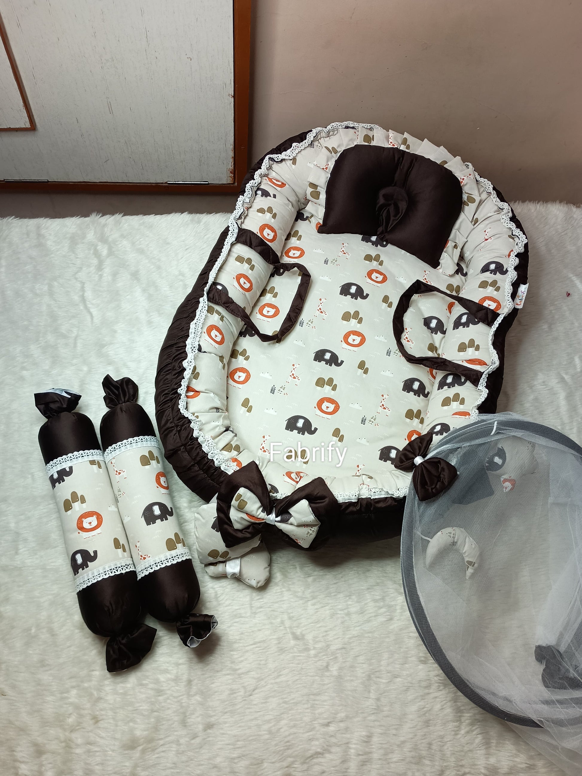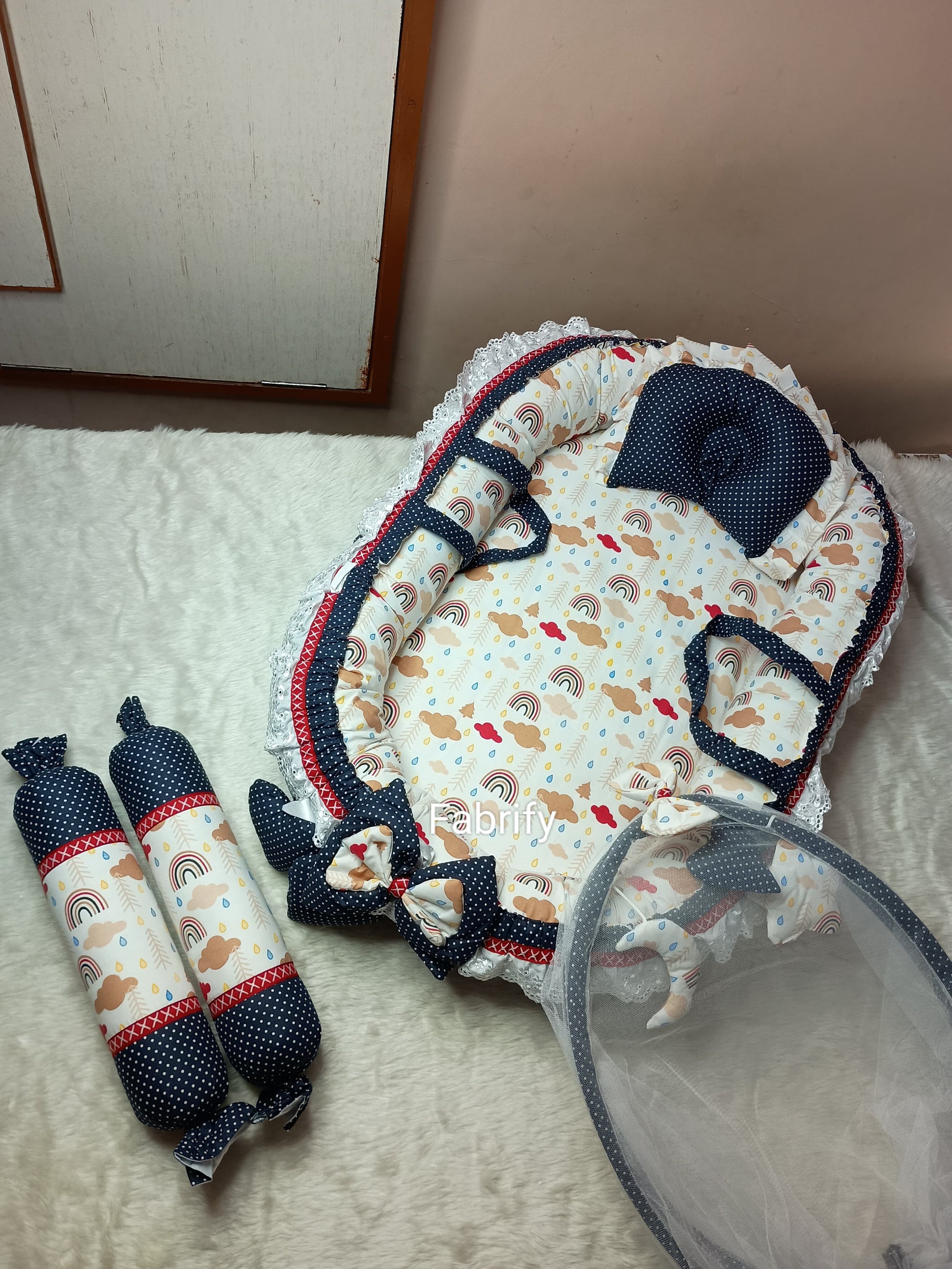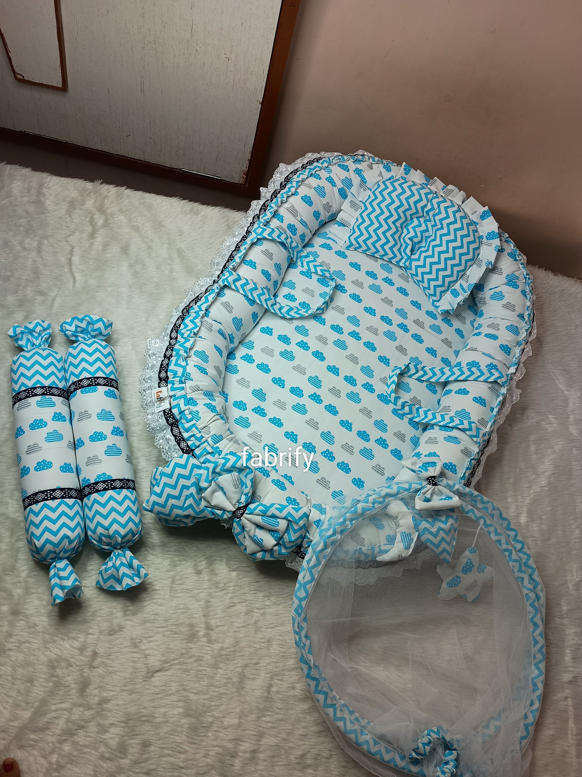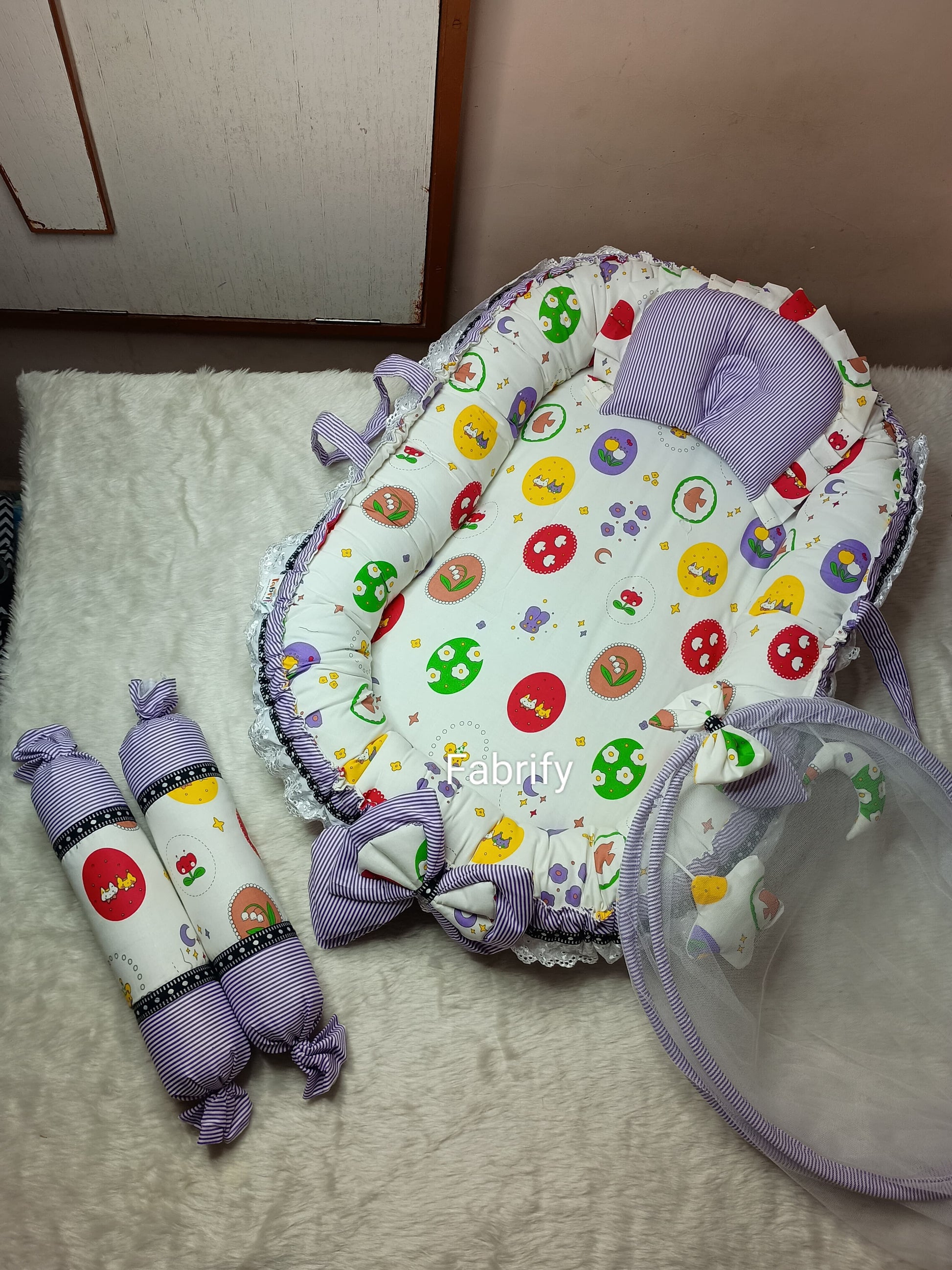 Fabrify Baby Nest Bed With Mosquito Net Head Pillow and 2 Side Pillow (0-18 M )