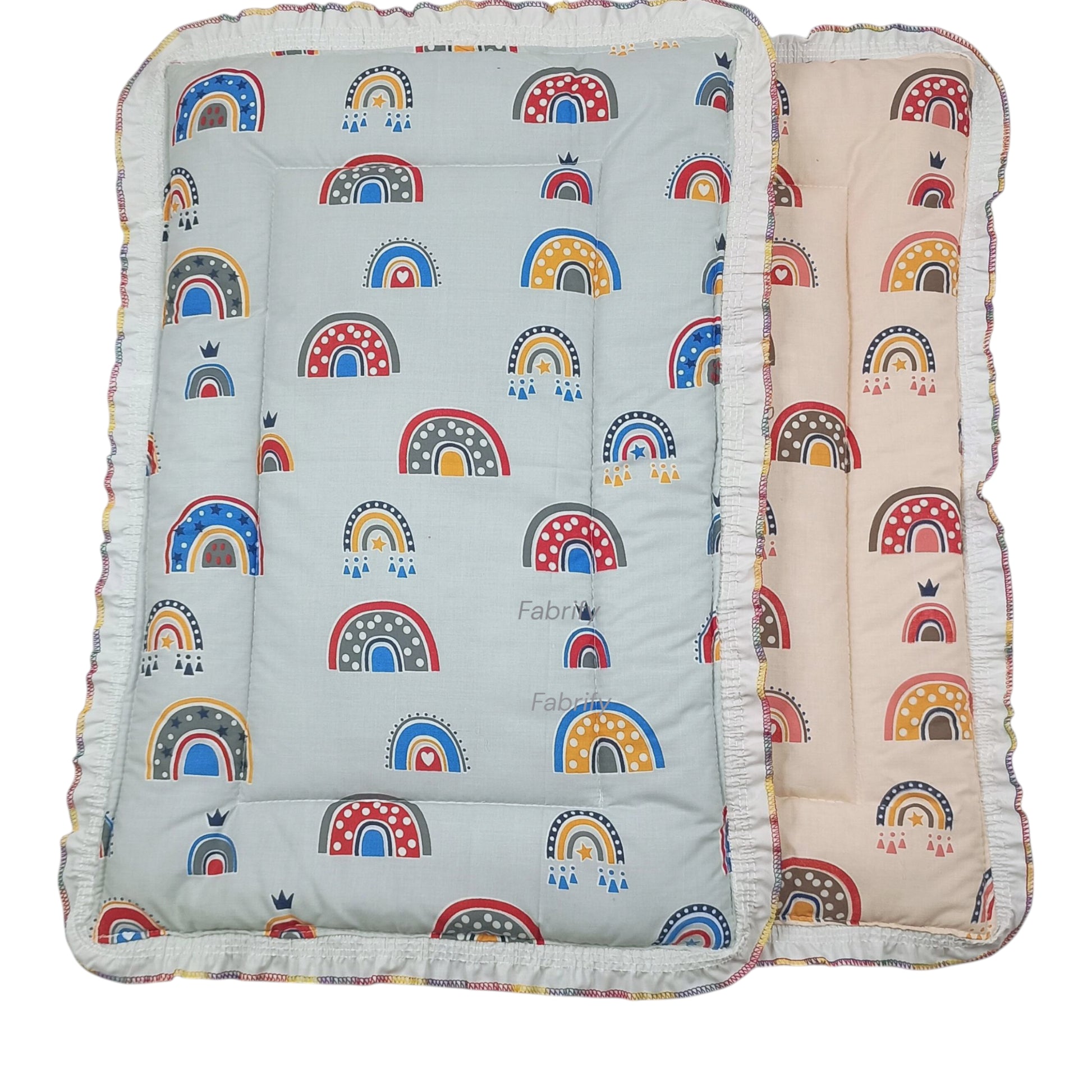 Fabrify Baby Newborn Soft Cotton Godadi | Kids gaddi | Crib Sheet | Baby mat | Godari |Bedding Set| Matress | Bed | Baby Bedding Set for New Born Quilt Rainbow Design (Pack of 2) (Blue and Orange)