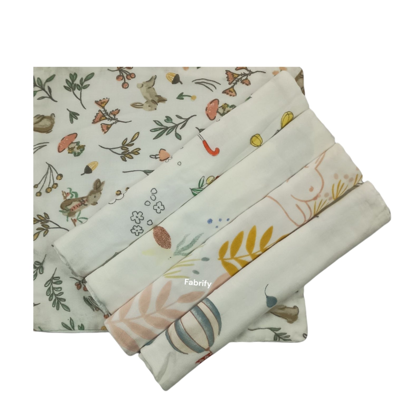 Fabrify Bamboo Muslin Cotton Face Towels for Newborn Baby Extra Soft Burp Cloths,Hankies, Washcloth Reusable Napkins for Infants Toddlers/Kids (Pack of5) White Printed