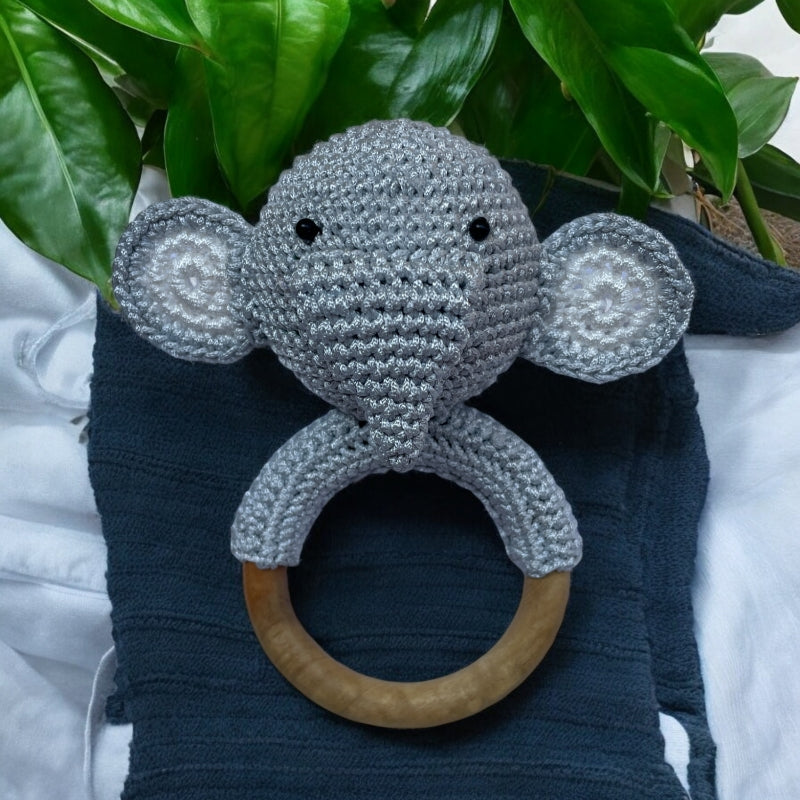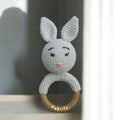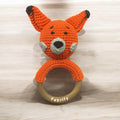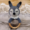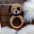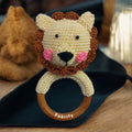 Fabrify Crochet Animal Baby Wooden Chewable Teether Cum Rattle