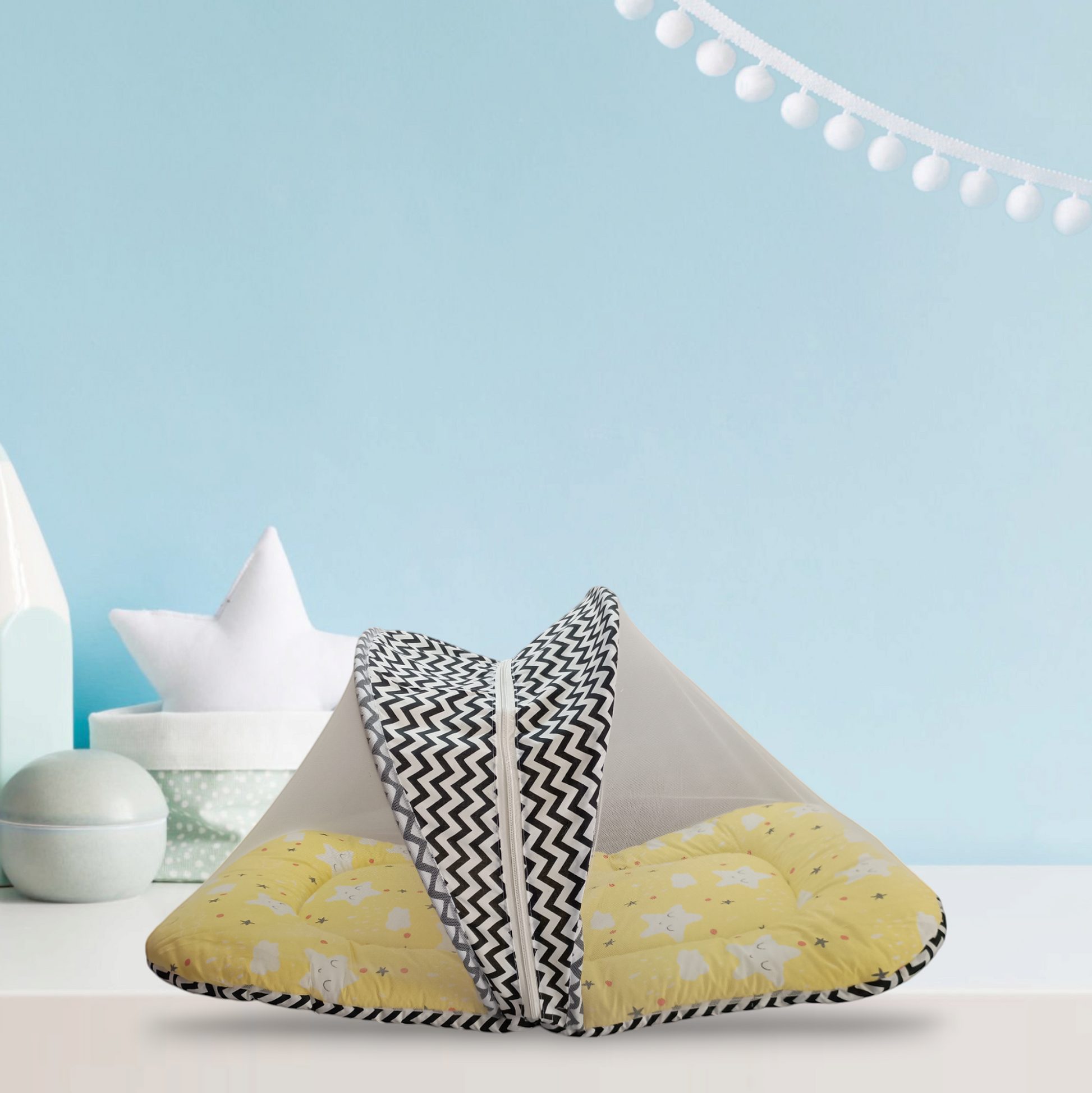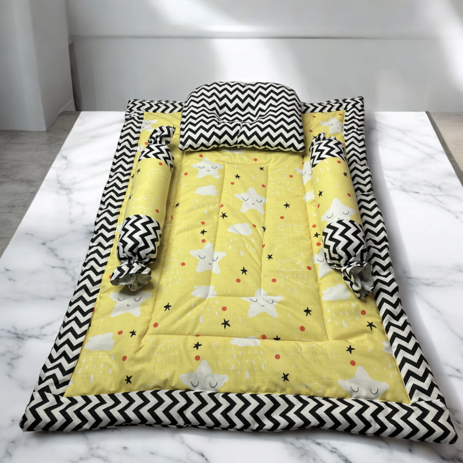 0 to 12 Months, L 100 x B 75 x H 46 cm, combo gadda set in attractive print for your baby's comfortable and peaceful time(Yellow)