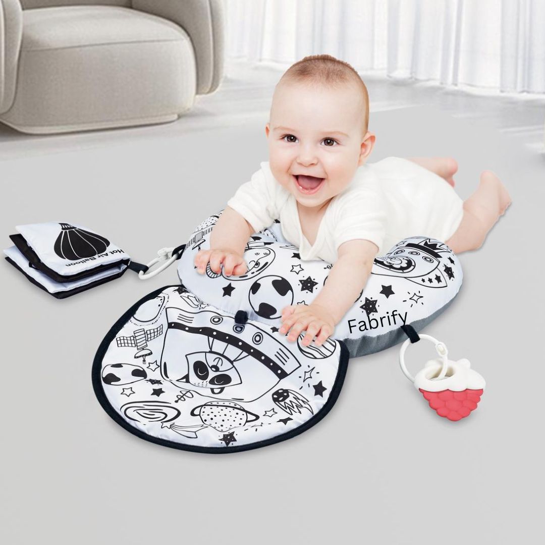 Fabrify Tummy Time Sensory Set – High Contrast Pillow with Crinkle Mat & Teethers for Babies (0–6 Months)