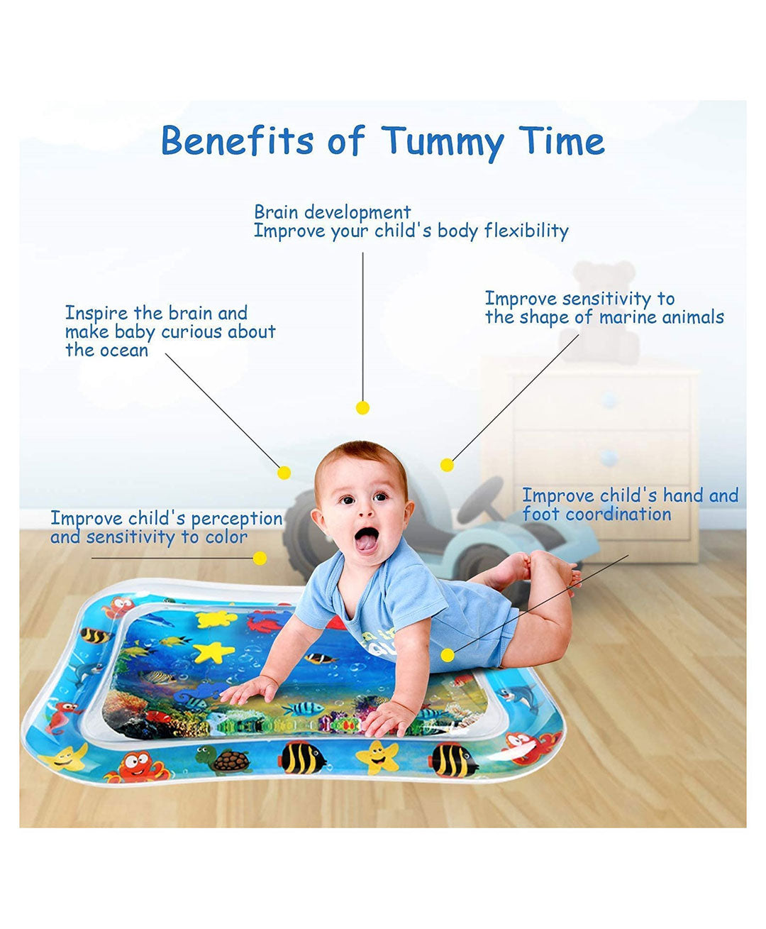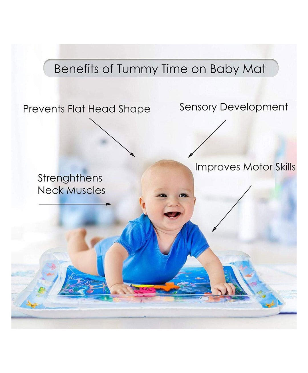 - The water-filled playmat provides a unique sensory experience, stimulating your baby's senses and promoting cognitive and motor skill development